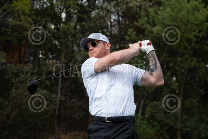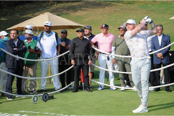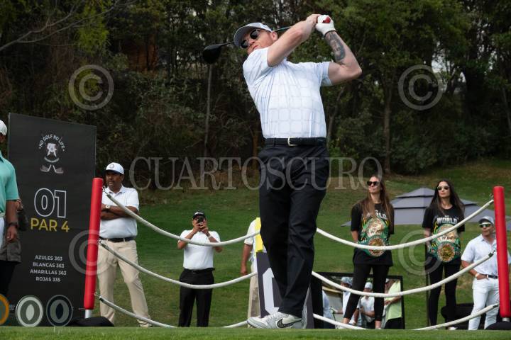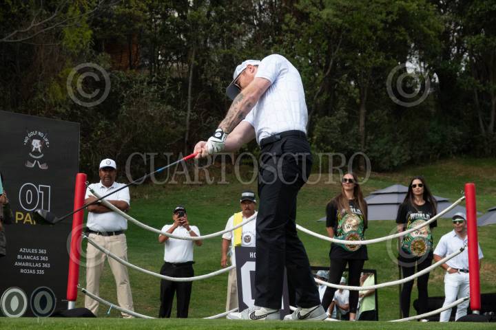 Saúl "Canelo" Álvarez durante lel golpe inaugural de la segunda edición del torneo de Golf "No Golf No Life" en el club Bosque Real de Naucalpan, Estado de México.