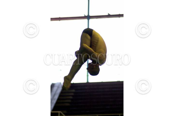 El ruso Dimitri Sautin obtuvo el segundo lugar en la Super Final de Clavados Grand Prix 2002, luego de una fuerte competencia con el mexicano Fernando Platas; esta tarde en la Alberca Olimpica "Francisco Marquez" de la ciudad de México. FOTO: Juan Pablo Zamora/CUARTOSCURO.COM