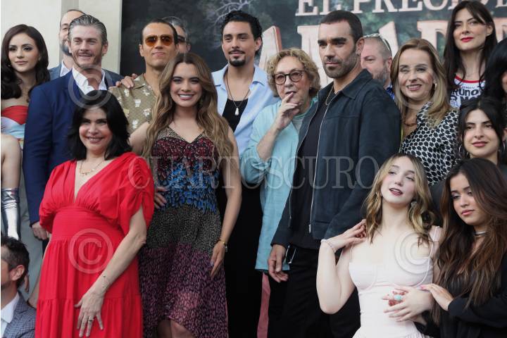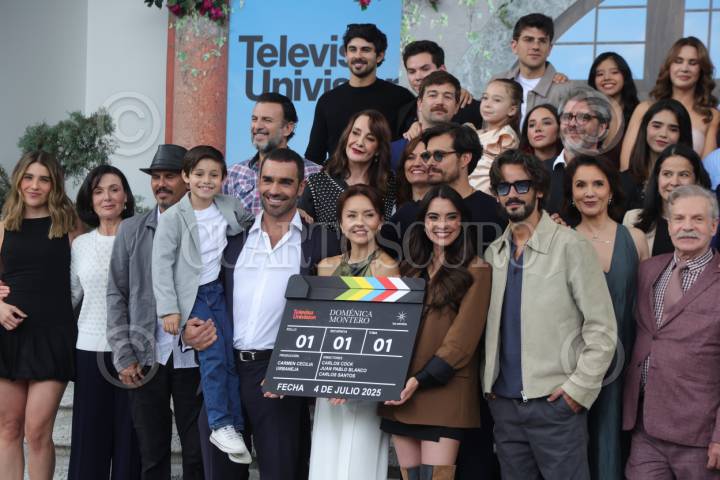 CIUDAD DE MÉXICO, 04JULIO2025. Parte del elenco en el pizarrazo por inicio de grabaciones de la nueva telenovela “Doménica Montero”, producida por Televisa Univisión. FOTO: EDGAR NEGRETE LIRA/CUARTOSCURO.COM