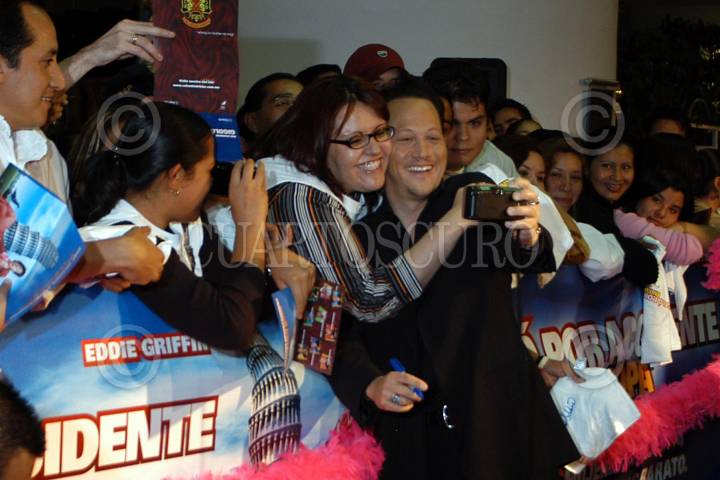 MEXICO D.F. 06SEPTIEMBRE2005.- Rob Schneider asistió al estreno se su pelicula ¨Gigolo por accidente en Europa¨. El actor se toma una foto con una aficionada que asistió a la alfrombra morada. FOTO: Germán Romero/CUARTOSCURO.COM