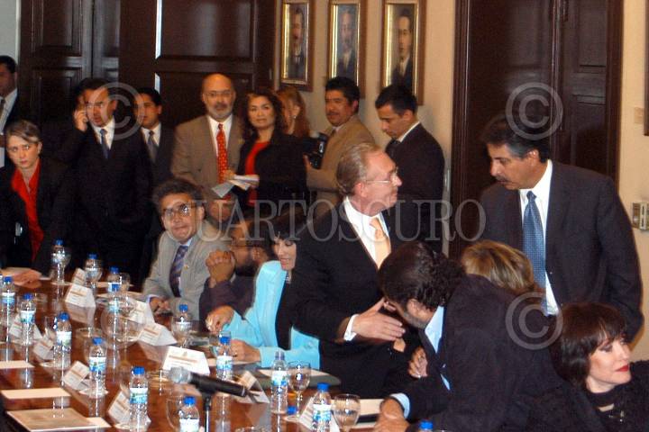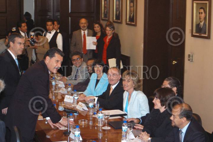 MEXDF 07JULIO2004.- El senador Enrique Jackson conversa con integrantes de diversas organizaciones contra la delincuencia. La Comisión Permanente del Congreso de la Unión se comprometió a revisar las reformas en materia de seguridad que no requieran mayor trámite para su aprobación en un periodo extraordinario de sesiones. FOTO: Germán Romero/CUARTOSCURO.COM