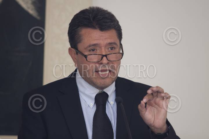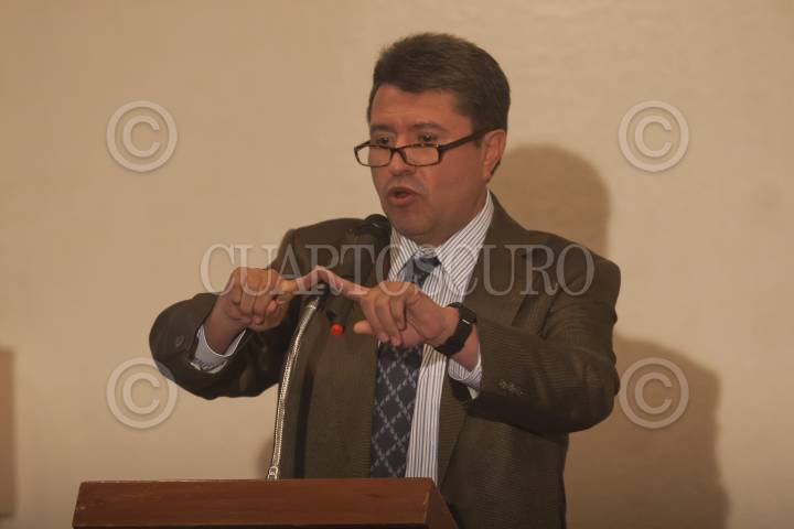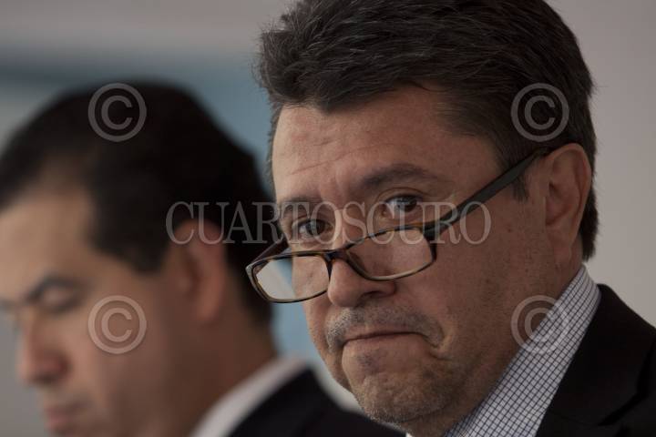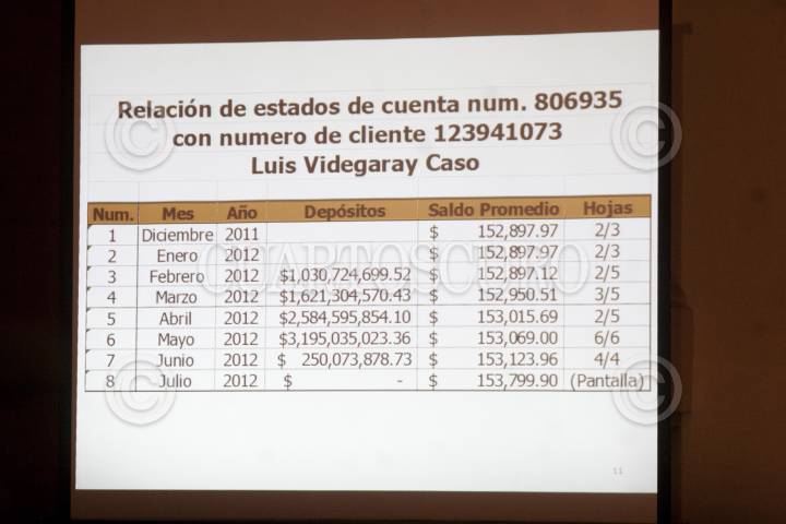 MÉXICO, D.F., 03AGOSTO2012.- Ricardo Monreal, ex-coordinador de campaña de Andrés Manuel López Obrador, ofreció una rueda de prensa para presentar pruebas sobre la validez de las cuentas de Luis Videgaray en Scotiabank en las que supuestamente el priista triangulaba recursos públicos en favor de la campaña de Enrique Peña Nieto, esta institución bancaria emitió un comunicado el día de ayer en la cual desmintieron que esta cuenta estuviera a nombre de Videgaray Caso. La cuenta 03800806935 de Scotiabank fue alimentada por otra cuenta de BBVA Bancomer con depósitos millonarios de febrero a junio del presente año, que superan los 8 mil 681 millones de pesos y aparaece como administrador Videgaray. Monreal Ávila presentó un audio en el cual una persona desconocida verifica los movimientos del día 19 de junio por 50 millones de pesos, el petista aseguró que el Movimiento Progresista recibió estas pruebas a través de ciudadanos que asistieron a la primera asamblea informativa del Plan Nacional de Defensa de la Democracia y de la Dignidad de México. FOTO: MOISÉS PABLO /CUARTOSCURO.COM