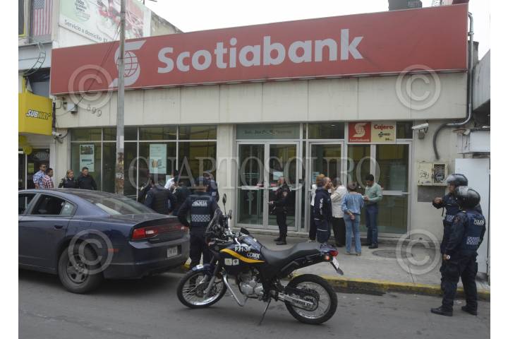 MÉXICO, D.F., 04SEPTIEMBRE2015.- Policías de la SSP-DF y de investigación, acudieron a la sucursal del banco Scotiabank ubicado en la avenida Fray Servando 899 en la delegación Venustiano Carranza, donde un sujeto amago con una arma a empleados para llevarse el dinero de las cajas. FOTO: ARMANDO MONROY/CUARTOSCURO.COM