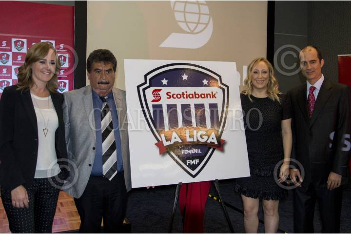 CIUDAD DE MÉXICO, 30AGOSTO2016.- José Antonio Huizar, director general de Sector Amateur de la Federación Mexicana de Fútbol (FMF); Lucía Pérez Levy, directora de Patrocinios de Scotiabank, y Guillermo Cantú, secretario general de la FMF, durante la presentación de la Primera Liga Nacional Femenil de Fútbol Amateur patrocinada por Scotiabank. FOTO: GALO CAÑAS /CUARTOSCURO.COM