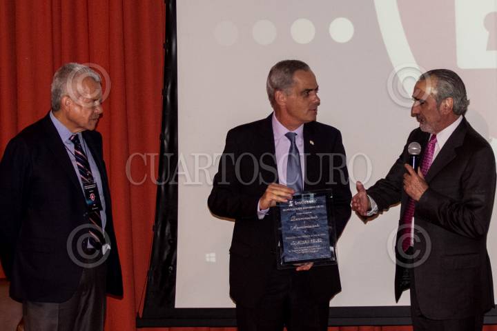 CIUDAD DE MÉXICO, 09MAYO2017.- Jonathan Peled, embajador de Israel en México, y Enrique Zorrilla, director general de Scotiabank, durante la presentación del primer congreso de “Seguridad Scotiabank Mexico Cyber Seguridad de Inteligencia 2017”. Peled destacó la gran lucha que se vive dentro de las plataformas digitales para evitar el robo de información a nivel mundial. FOTO: GALO CAÑAS /CUARTOSCURO.COM