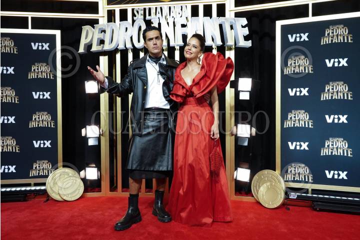 CIUDAD DE MÉXICO, 27NOVIEMBRE2023.- Los actores Mario Moran y Ana Claudia Talancón durante Alfombra roja de la bioserie "Se llamaba Pedro Infante", dirigida por Sergio Siruela, realizada en Estudios Churubusco. FOTO: GRACIELA LÓPEZ /CUARTOSCURO.COM