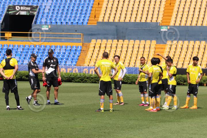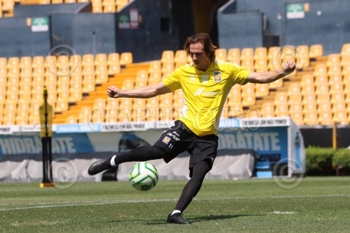 Sebastián Córdova, de Tigres entrena a puerta cerrada en el estadio Universitario, previo al encuentro contra las Chivas del Guadalajara el próximo jueves.