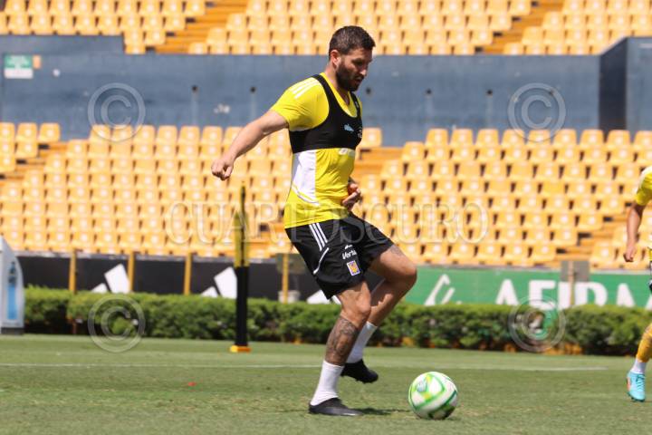 André-Pierre Gignac, de Tigres entrena a puerta cerrada en el estadio Universitario, previo al encuentro contra las Chivas del Guadalajara el próximo jueves.