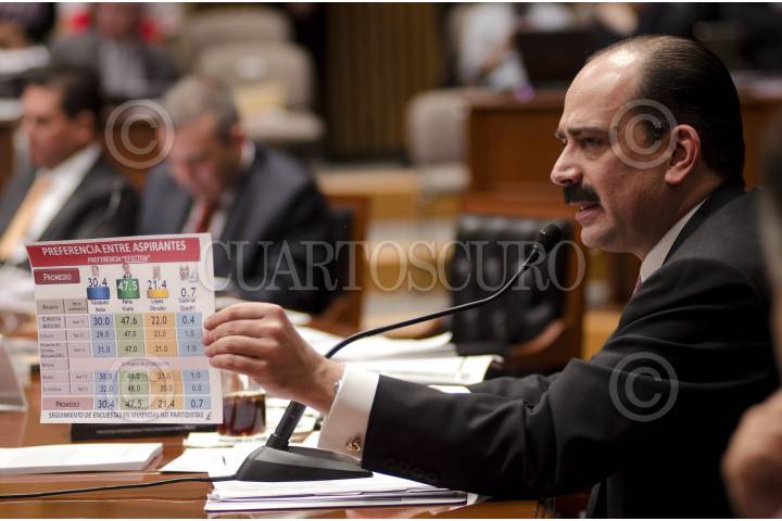 MÉXICO, D.F., 21MARZO2012.- Sebastian Lerdo de Tejada, representante del Partido Revolucionario Institutcioanl (PRI), presenta una encuesta durante la sesión del Consejo General del Instituto Federal Electoral (IFE). En la que el candidato del PRI, Enrique Peña Nieto muestra notable ventaja sobre el resto de sus contrincantes. FOTO: CUARTOSCURO.COM