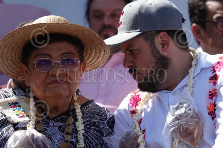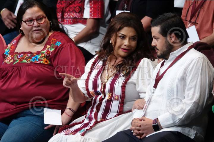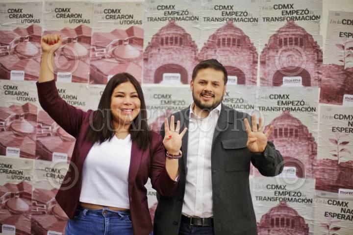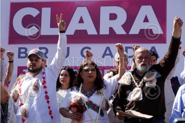 CIUDAD DE MÉXICO, 15MARZO2024.- Clara Brugada, candidata a la jefatura de gobierno por la alianza Morena-PVEM-PT, encabezó una asamblea con simpatizantes en la plaza de las Tres Culturas. La ex alcaldesa de Iztapalapa estuvo acompañada por: Sebastián Ramírez, presidente de Morena en la Ciudad de México; Ernestina Godoy, candidata al senado; Jaime Rello, enlace con movimientos populares de la campaña; FOTO: GALO CAÑAS/CUARTOSCURO.COM