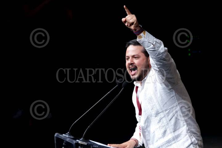 CIUDAD DE MÉXICO, 03MARZO2024.- Sebastián Ramírez, presidente de Morena, durante su participación en la presentación de las propuestas de campaña de Clara Brugada, candidata a Jefa de Gobierno por la coalición "Sigamos haciendo Historia en la Ciudad de México", realizada en el Auditorio Nacional. FOTO: GRACIELA LÓPEZ /CUARTOSCURO.COM