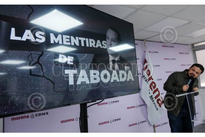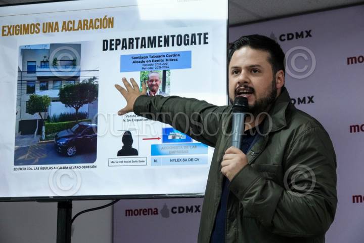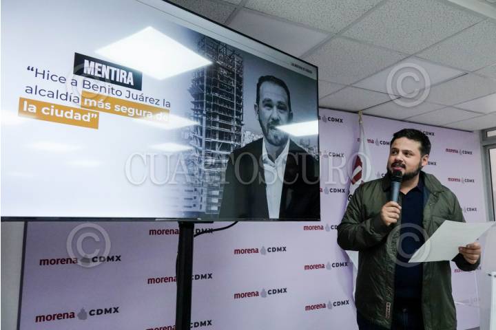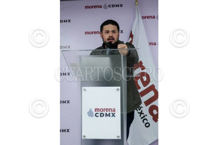 CIUDAD DE MÉXICO, 20MARZO2024.- Sebastián Ramírez, dirigente de Movimiento de Regeneración Nacional (Morena) en la Ciudad de México, encabezó la conferencia de prensa en que expuso las que llamó “Las Mentiras de Taboada”. Ramírez Mendoza mencionó que todo lo dicho por el candidato de la alianza PAN-PRI-PRD Santiago Taboada, durante el primer debate por la Ciudad de México, son mentiras y llamó a investigar un posible conflicto de interés por la venta de un departamento por parte del ex alcalde de Benito Juárez a un prestadora de servicios de la alcaldía durante su administración. FOTO: GALO CAÑAS/CUARTOSCURO.COM