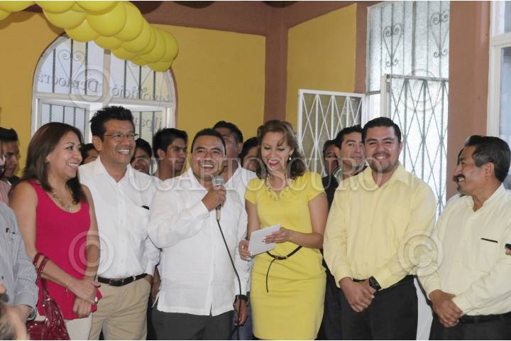 CHILPANCINGO, GUERRERO, 17FEBRERO2014.- En la imagen el corte de listón inaugural de las oficina del comité municipal del PRD, al cual asistió el diputado local Antonio Gaspar Beltrán, el diputado Sebastián de la Rosa Peláez, el senador Celestino Cesáreo y el presidente del comité Emilio Chavarría Díaz. Acudió también el procurador de la Procuraduría de Protección Econológica del Estado de Guerrero (PROPEG), Julio César Aguirre y la titular de la Secretaría de Equidad y Género, Nichdali Isis Obregón. FOTO: JOSÉ I. HERNÁNDEZ /CUARTOSCURO.COM