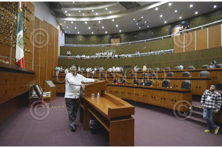 CHILPANCINGO, GUERRERO, 11MAYO2017.- El diputado perredista Sebastián de la Rosa Peláez se que quedó hablando solo en tribuna durante la sesión en el Congreso, esto debido a que los diputados priistas prefirieron atender una plática partidista en una esquina, mientras el legislador del solazteca decía su intervención. FOTO: JOSÉ I. HERNÁNDEZ /CUARTOSCURO.COM