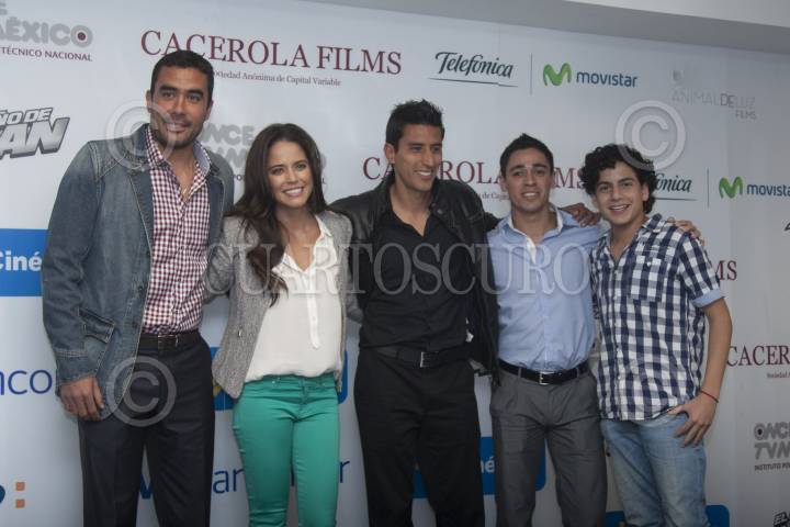 MÉXICO, D.F., 30ENERO2013.- Los actores, Ana Claudia Talancon y Sebastian Rivera, presentaron en conferencia de prensa la cinta "El Sueño de Iván" de Roberto Santiago y que se estrena el 14 de Febrero con 50 copias. La cinta aborda los sueños de un niño de 11 años que desea jugar futbol con los grandes y vive su primera aventura de amor. Al finalizar la conferencia de prensa fueron acompañados por los jugadores de futbol del Culb Toluca, Edgar Benítez, Marvín Cabrera y Fausto Pinto. FOTO: FRANCISCO RODRÍGUEZ /CUARTOSCURO.COM