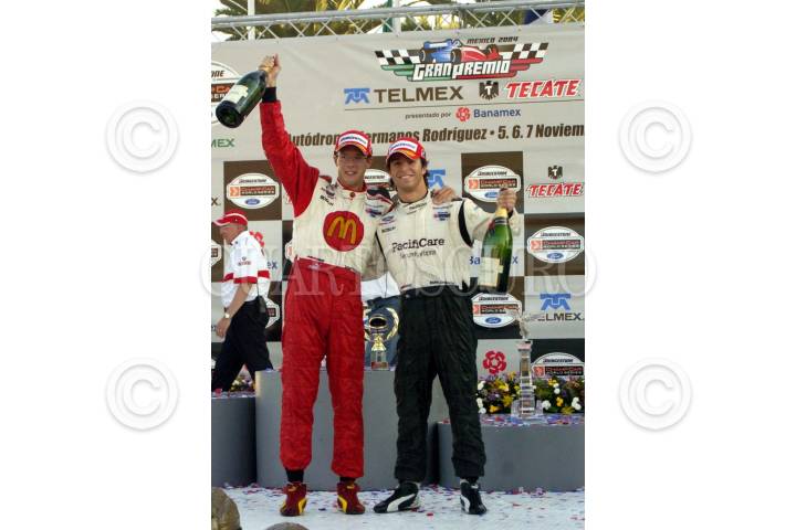 México, D.F., 07NOVIEMBRE2004.- El frances Sebastien Bourdais, ganó el Gran Premio Telmex Tecate, ultima fecha del serial Champ Car. El segundo lugar fue para el brasileño Bruno Junquiera, en competencia realizada en el Autodromo Hermanos Rodríguez. FOTO: Moisés Pablo/CUARTOSCURO.COM