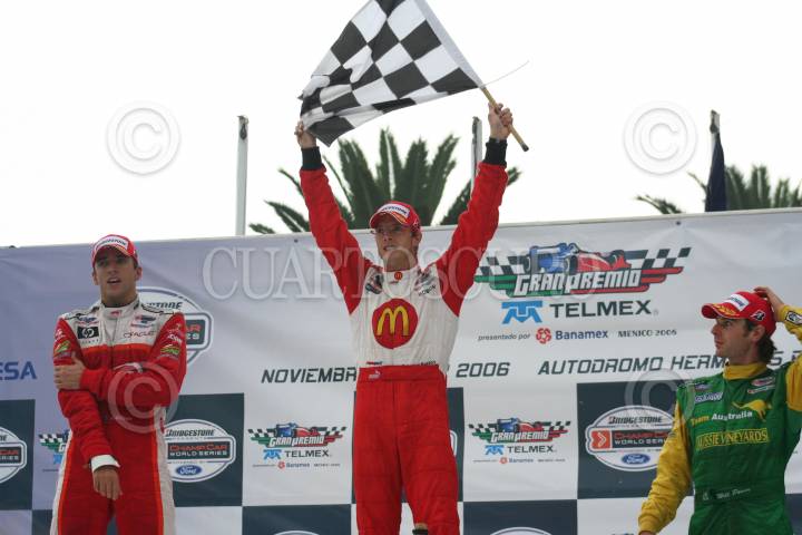 MÉXICO, D.F., 12NOVIEMBRE2006.- Justin Wilson, Sebastien Bourdais, y Will Power obtuvieron los tres primeros lugares en la última fecha de la Champ Car, realizada en el Autódromo Hermanos Rodríguez. FOTO: ISAAC ESQUIVEL/CUARTOSCURO.COM