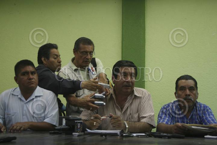 OAXACA, OAXACA, 22NOVIEMBRE2012.- Rubén Núñez, dirigente de la Sección 22 del SNTE, durante la conferencia de prensa en la que exigió la destitución de diversos funcionarios estatales por el enfrentamiento ocurrido el miércoles entre pobladores de Mitla y profesores de dicho gremio. El sectorial pidió la destitución del secretario de Seguridad Pública, Marco Tulio López Escamilla, el director del IEEPO, Antonio Iturribarría y del edil de Mitla, Alejandro Galo Bautista. Además anunció bloqueos indefinidos en tanto no se cumplan con sus demandas. FOTO: ARTURO PÉREZ ALFONSO /CUARTOSCURO.COM