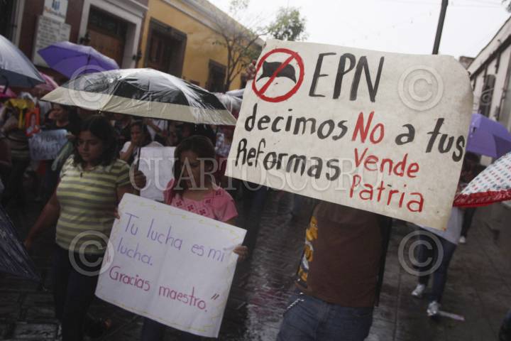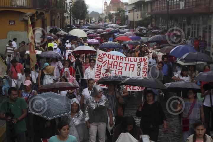OAXACA, OAXACA, 30AGOSTO2013.- Un aproximado de mil padres de familia realizaron una marcha en la ciudad de Oaxaca como respaldo a la Sección 22 del SNTE, pese a una fuerte lluvia que cayó en la ciudad los manifestantes partieron del Parque el Llano hacia el zócalo, aseguraron que el paro de labores de los educadores es en beneficio de la educación gratuita. FOTO: ARTURO PÉREZ ALFONSO /CUARTOSCURO.COM