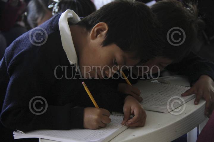 SAN AGUSTÍN DE LAS JUNTAS, OAXACA, 04OCTUBRE2013.- Un aproximado de 200 estudiantes de las primarias matutina Ignacio Zaragoza y la vespertina José Vasconcelos iniciaron clases este viernes en la explanada municipal de dicha localidad conurbada a la ciudad de Oaxaca. Los padres de familia dijeron estar cansados del paro de labores iniciado el 19 de agosto por parte de los profesores de la Sección 22 del SNTE por lo que solicitaron a un grupo de mentores independientes se encargaran de darles clases. Oficialmente iniciarán la impartición de clases el próximo lunes. FOTO: ARTURO PÉREZ ALFONSO /CUARTOSCURO.COM
