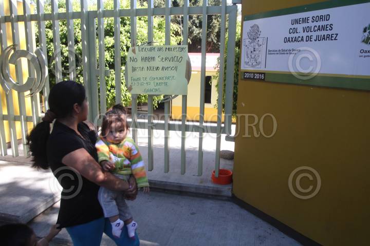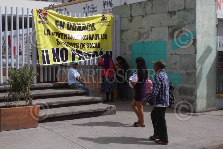 OAXACA, OAXACA., 03NOVIEMBRE2016.- Integrantes de la subsección 07 pertenecientes a la sección 35 del SNTSA protestaron este jueves para demandar al gobernador Gabino Cué se realice el pago a terceros institucionales y no institucionales, además de que se terminen las obras que se realizan al interior del hospital Dr. Aurelio Valdivieso, mismas que se deberían concluir desde el mes de abril y que al día de hoy tienen un avance del 40 por ciento. FOTO: ARTURO PÉREZ ALFONSO /CUARTOSCURO.COM