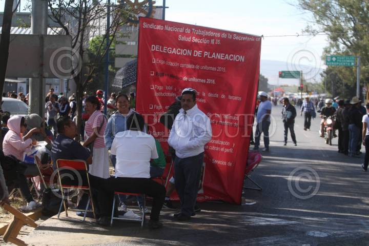 OAXACA, OAXACA., 28OCTUBRE2016.- Este viernes se cumplieron dos semanas de que integrantes de la sección 35 del Sindicato Nacional de Trabajadores de la Secretaría de Salud (SNTSA) iniciaron un paro de labores, para este viernes realizaron 3 bloqueos carreteros en los principales accesos a la capital del estado, lo anterior para exigir respuestas a la entrega de uniformes del periodo 2016, pero además del pago a terceros institucionales y no institucionales que asciende a más de dos mil millones de pesos. FOTO: ARTURO PÉREZ ALFONSO /CUARTOSCURO.COM