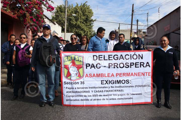 OAXACA, OAXACA., 14OCTUBRE2016.- Integrantes de la sección 35 del SNTSA pararon labores este viernes para demandar al gobierno del estado la entrega de uniformes correspondientes al año 2016, el pago a terceros institucionales y no institucionales, pero además la culminación de las 67 obras que integran un cuadernillo presentado por el ejecutivo estatal. FOTO: ARTURO PÉREZ ALFONSO /CUARTOSCURO.COM