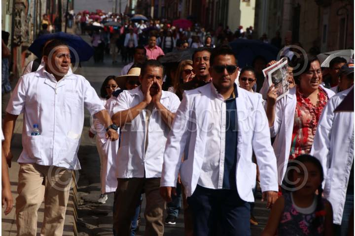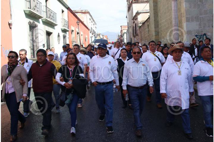 OAXACA, OAXACA, 19ENERO2018.- Cientos de empleados agremiados a Sindicato Nacional de los Trabajadores de la Secretaría de Salud (SNTSA) marcharon para demandar el pago de sus salarios, así como para exigir el no despido de mil trabajadores acusados de ser aviadores por autoridades estatales, además demandaron la salida del secretario de Salud, Juan Díaz Pimentel. FOTO: ARTURO PÉREZ ALFONSO/ CUARTOSCURO.COM