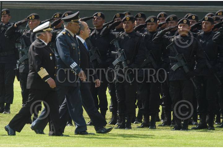 MÉXICO, D.F. 01DICIEMBRE2006.- Felipe Calderón Hinojosa, presidente de México; Mariano Saynez, Secretario de Marina y Guillermo Galván, Secretario de Defensa Nacional, durante los honores que las fuerzas armadas le hicieron al presidente de los Estados Unidos Mexicanos en el Campo militar Marte. FOTO: IVÁN STEPHENS/CUARTOSCURO.COM
