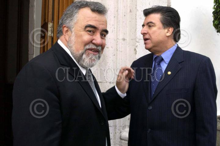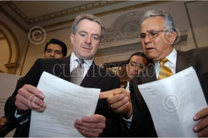MEXICO, D.F. 09MAYO2005.- Felipe González, subsecretario de Gobierno de la Secretaría de Gobernación, y Alejandro Encinas, secreario de Gobierno del Distrito Federal, al término de la reunión que sustuvieron para establecer la agenda de discusión en donde se trató el tema del agua y el drenaje en la ciudad de México. FOTO: Ignacio González/CUARTOSCURO.COM