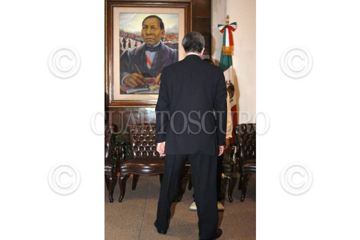 MEXICO D.F. 28ABRIL2005.- El secretario de Gobernaciòn Santiago Creel llega a la ceremonia de premiaciòn de los ganadores de un concurso de cartel. FOTO: Germàn Romero/CUARTOSCURO.COM