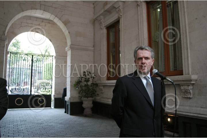 MEXICO D.F. 28ABRIL2005.- El secretario de Gobernaciòn Santiago Creel ofreció una conferencia de prensa en los pasillos de la dependencia. El funcionario federal calificó como "fuego amigo anticipado" la exigencia del diputado panista Juan Molinar Horcasitas de que renuncie a su cargo. FOTO: Germàn Romero/CUARTOSCURO.COM
