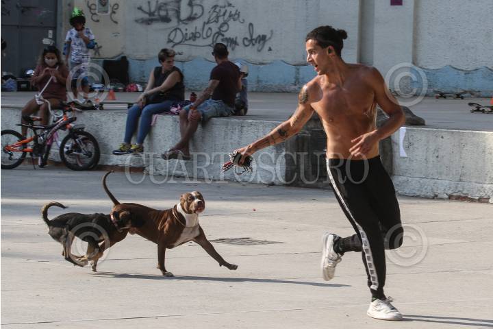 Un hombre realiza ejercicio sin playera, debido a las altas temperaturas registradas en la ciudad.