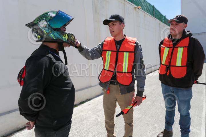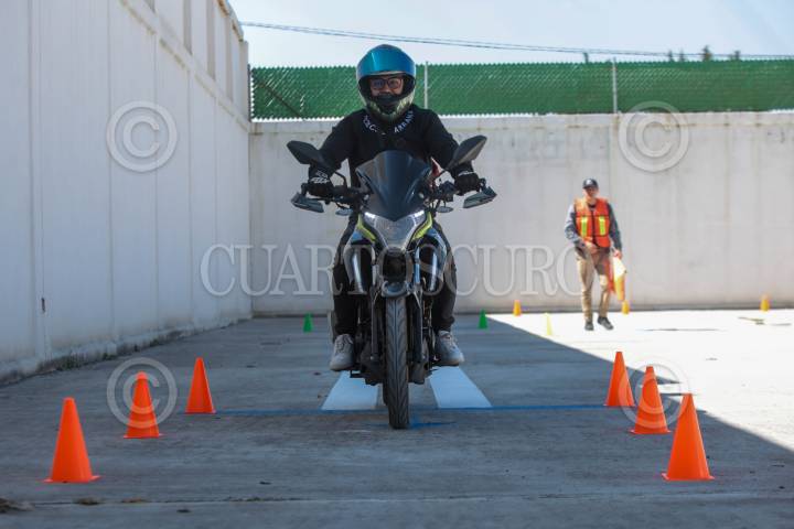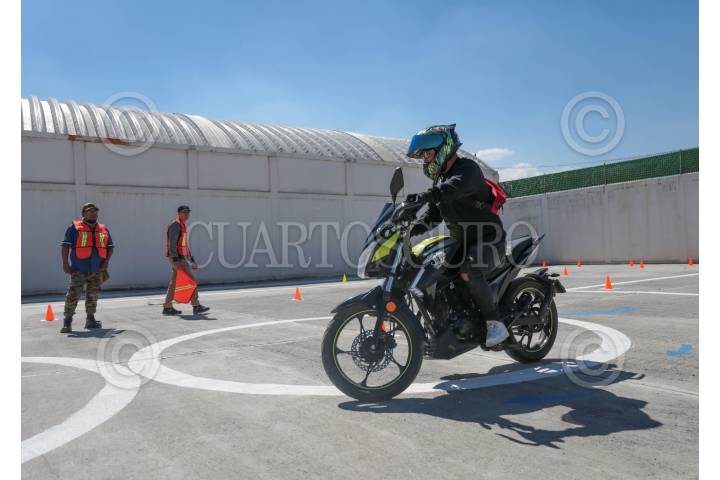 METEPEC, ESTADO DE MÉXICO, 23ENERO2025.- La Secretaría de Movilidad instaló el segundo módulo de certificación para motocicletas ahora en el Valle de Toluca, instalado en el municipio de Metepec, para facilitar este requisito, que tiene un costo de 460 pesos, el proceso de certificación se realiza en un promedio de 40 minutos y consta de 3 etapas, ejercicios de desempeño y habilidades del motociclista en un circuito controlado, en la segunda el instructor realiza preguntas de conocimientos generales de reglamentos y finalmente una prueba técnico-operativa de los componentes de la motocicleta. FOTO: CRISANTA ESPINOSA AGUILAR /CUARTOSCURO.COM