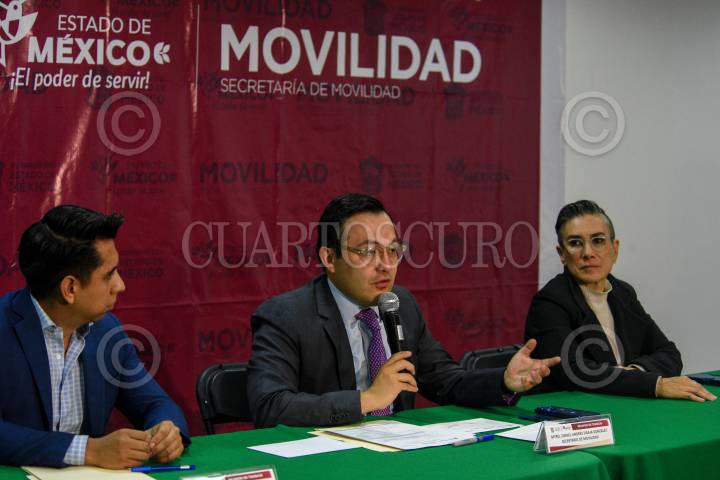 TOLUCA, ESTADO DE MÉXICO, 14JULIO2025.- Daniel Sibaja González, Secretario de Movilidad estatal en conferencia de prensa, acompañado por Ricardo Delgado Reynoso, Subsecretario de Movilidad y Ana Cecilia López Dávila, Coordinadora Jurídica, de Igualdad de Género y Erradicación de la Violencia, informó que el Gobierno del Estado de México intensifica la vigilancia al transporte público con más de 2 mil operativos, así como dio por concluidas 4 concesiones a transporte público, se han presentado 13 denuncias penales e iniciado 16 procedimientos administrativos contra operadores, esto como parte de la Política Cero Tolerancia de la secretaria. FOTO: CRISANTA ESPINOSA AGUILAR/CUARTOSCURO.COM