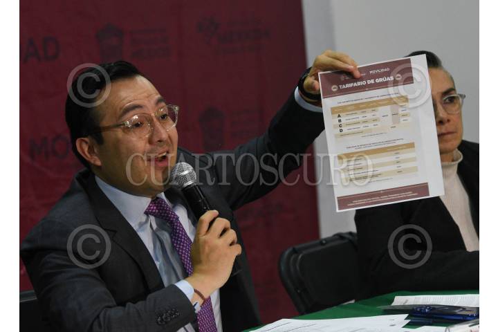 TOLUCA, ESTADO DE MÉXICO, 12OCTUBRE2023.- Daniel Sibaja Secretario de Movilidad en el Estado de México en conferencia de prensa dijo que combatirán la corrupción que existe en corralones y servicios de grúas en la entidad mexiquense, y anunció emprenderán un programa de regularización de concesiones, así como ya no serán permitidos pagos en efectivo y existirá una tarifa de grúas para evitar el abuso en el cubro de estos servicios. FOTO: CRISANTA ESPINOSA AGUILAR /CUARTOSCURO.COM