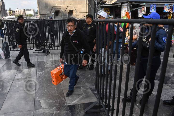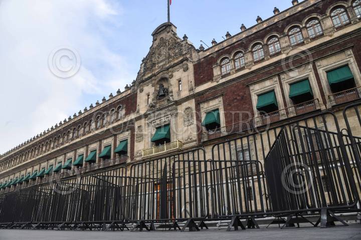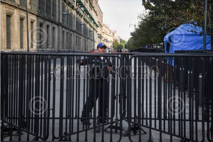CIUDAD DE MÉXICO, 14ENERO2025.- Vallas de 1.50 metros fueron colocadas para reforzar la seguridad en las inmediaciones de Palacio Nacional por personal de la Secretaría de Seguridad Ciudadana (SSC), anteriormente el recinto se encontraba con vallas de 1.20 metros. FOTO: MARIO JASSO/CUARTOSCURO.COM