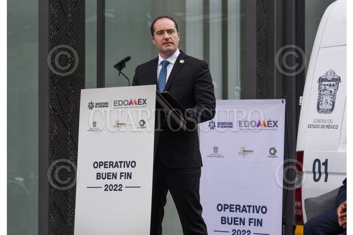 Ricardo Martínez Celis Wogau Secretario de Seguridad Estatal dio arranque al Operativo de Seguridad del Buen Fin 2022 en el Estado de México que prestará mayor atención a las zonas comerciales de gran afluencia así como instalaciones bancarias para inhibir cualquier delito.