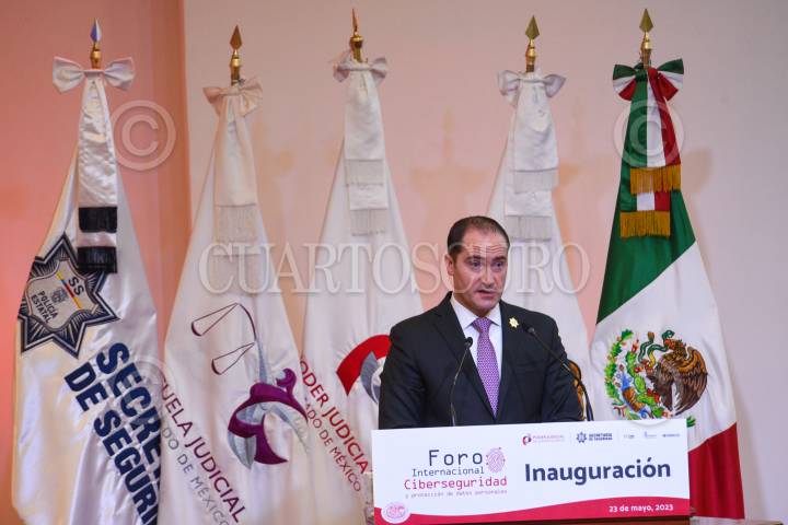 Rodrigo Martínez-Celis Wogau Secretario de Seguridad del Estado de México encabezó el Foro Internacional Ciberseguridad y protección de datos personales.