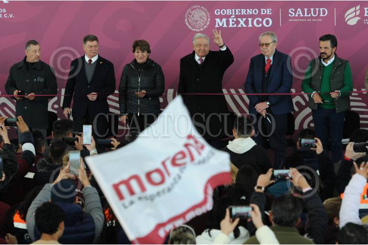 HUEHUETOCA, EDOMEX,29DICIEMBRE2023.- Acompañado por su gabinete de Salud y la gobernadora del Estado de México, Delfina Gómez, Andrés Manuel López Obrador, presidente de México, inauguró la Megafarmacia del Bienestar. FOTO: DANIEL AUGUSTO/CUARTOSCURO.COM