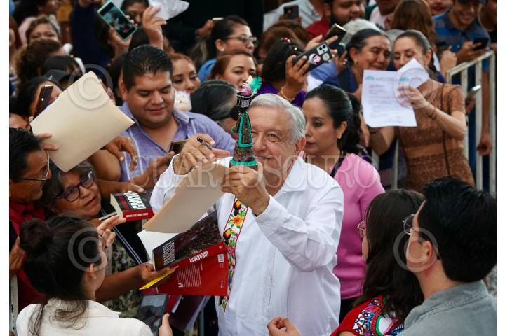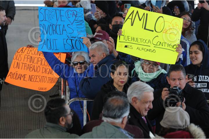 HUEHUETOCA, EDOMEX, 29DICIEMBRE2023.- Simpatizantes del presidente de México, Andrés Manuel López Obrador, lo reciben con porras a su llegada a la Megafarmacia del Bienestar. FOTO: DANIEL AUGUSTO/CUARTOSCURO.COM
