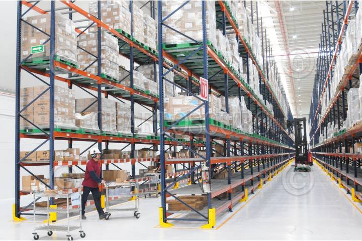 HUEHUETOCA, EDOMEX, 29DICIEMBRE2023. - Una trabajadora de Birmex coloca medicamentos en los anaqueles de las bodegas de la Megafarmacia del Bienestar. FOTO: DANIEL AUGUSTO /CUARTOSCURO.COM
