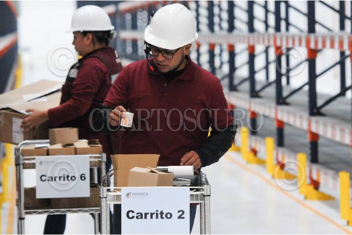 HUEHUETOCA, EDOMEX, 29DICIEMBRE2023. - Trabajadores de Birmex colocan distintas medicinas en los anaqueles de la recién inaugurada Megafarmacia del Bienestar. FOTO: DANIEL AUGUSTO /CUARTOSCURO.COM