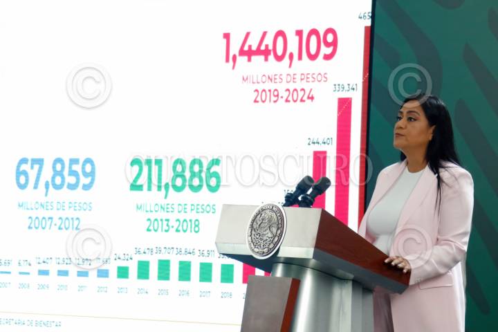 CIUDAD DE MÉXICO, 19MAYO2025.- Ariadna Montreal, secretaria de Bienestar, habló sobre el censo que la dependencia esta realizando en el tema de vivienda, durante la mañanera del pueblo en Palacio Nacional. FOTO: MOISÉS PABLO/CUARTOSCURO.COM