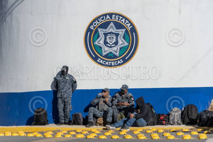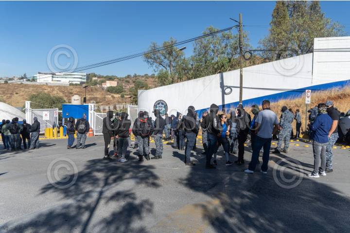 MORELIA, MICHOACÁN. 11JUNIO2024. Un grupo de policías de la Guardia Civil (GC), de la Secretaría de Seguridad Pública de Michoacán se manifestaron para exigir sueldos justos, respeto a sus prestaciones y equipamiento. Los uniformados indicaron que han sido víctimas de abusos por parte de sus mandos, así como descuentos en sus sueldos. Además hicieron referencia al pago Banbajio donde no se les ha aumentado, en ocasiones se les ha negado el pago, así como el bono denominado «tractor». Mencionaron que temen salir a las calles a cuidar a la población ante la carencia de equipo, entre ello armamento y municiones. Los policías bloquearon los 4 accesos a la SSP y bloquearon ambos carriles del libramiento al exterior de la dependencia. FOTO: JUAN JOSÉ ESTRADA SERAFÍN /CUARTOSCURO.COM