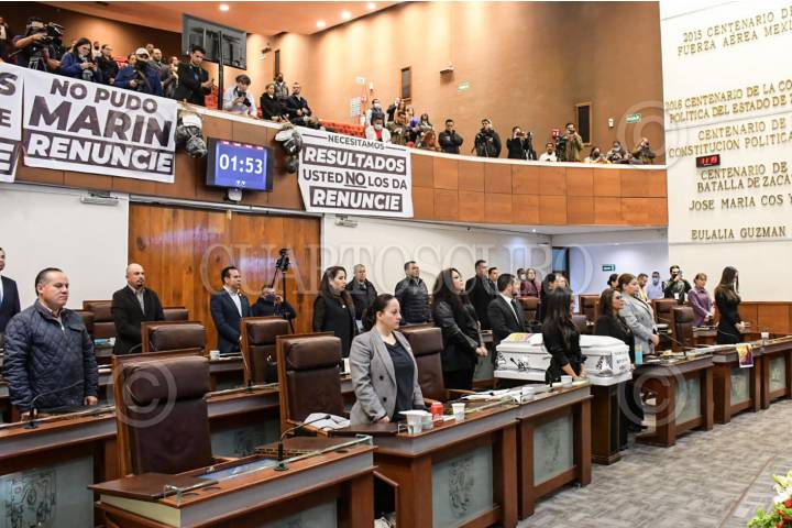 Adolfo Marín Marín, secretario de Seguridad Pública del Estado, compareció ante el Congreso del Estado, como parte de la glosa por el Primer Informe de Gobierno de David, Monreal Ávila, gobernador del Estado.