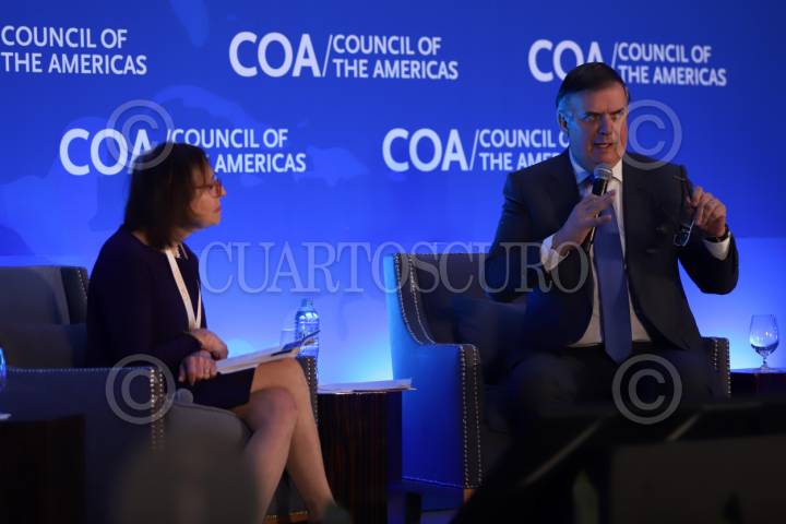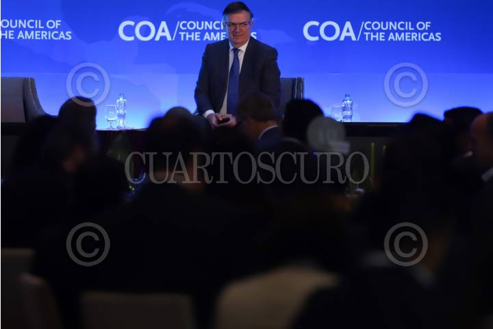 CIUDAD DE MÉXICO, 20MAYO2025.- El secretario de Economía, Marcelo Ebrard, participó este martes en el foro “México: Impulsando la Competitividad de América del Norte”, organizado por el Council of the Americas. FOTO: DANIEL AUGUSTO/CUARTOSCURO.COM