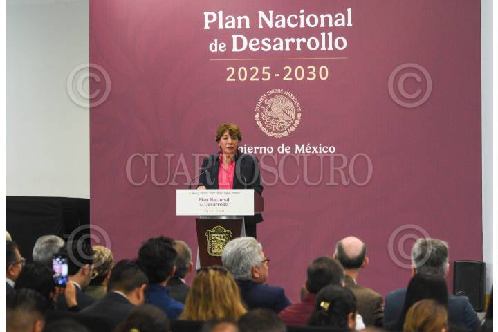 TOLUCA, ESTADO DE MÉXICO, 15ENERO2025.- Delfina Gómez Álvarez, Gobernadora del Estado de México durante las Mesas de Diálogo del Foro “Economía Moral y Trabajo” para la construcción del Plan Nacional de Desarrollo 2025-2030. FOTO: CRISANTA ESPINOSA AGUILAR /CUARTOSCURO.COM