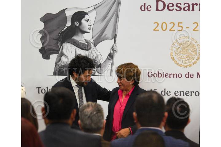 TOLUCA, ESTADO DE MÉXICO, 15ENERO2025.- Marath Baruch Bolaños López, Secretario del Trabajo y Previsión Social Federal, acompañado por la Gobernadora mexiquense Delfina Gómez Álvarez, encabezó las Mesas de Diálogo del Foro “Economía Moral y Trabajo” para la construcción del Plan Nacional de Desarrollo 2025-2030. FOTO: CRISANTA ESPINOSA AGUILAR /CUARTOSCURO.COM