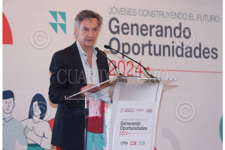 CIUDAD DE MÉXICO, 01FEBRERO2024. Pablo González, presidente de la Comisión de Educación del CCE durante su participación en el evento Jóvenes Construyendo el Futuro: Generando Oportunidades 2024, donde se entregaron reconocimientos a empresas participantes en este programa, en el Club de Industriales. FOTO: EDGAR NEGRETE LIRA/CUARTOSCURO.COM